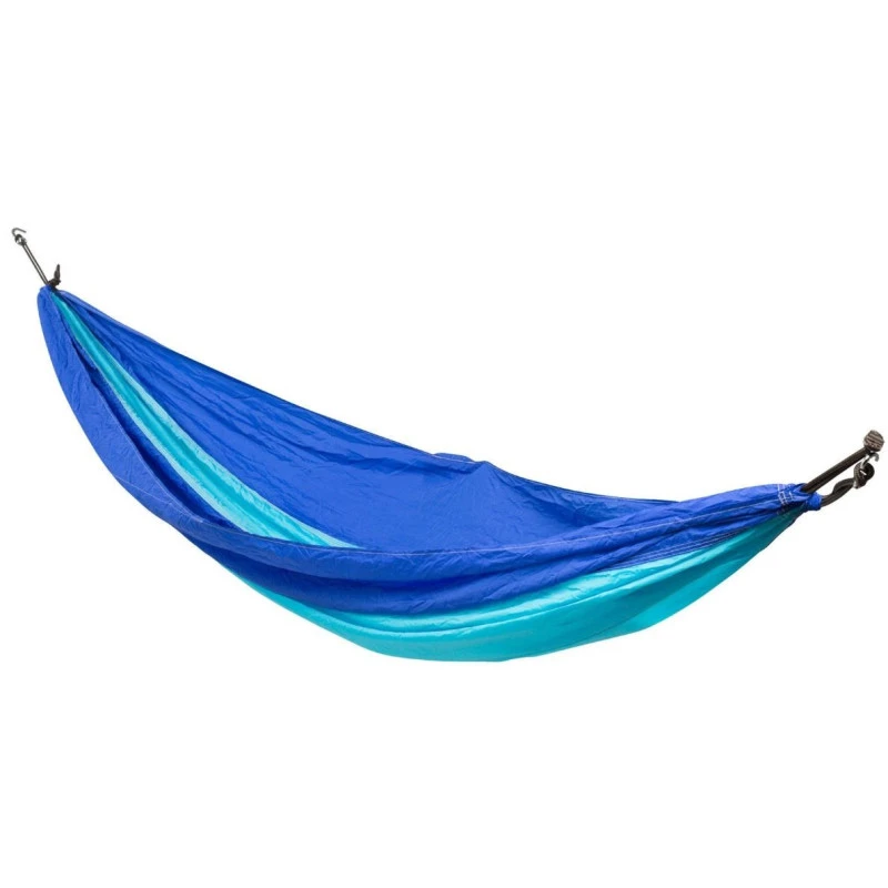 Hamac en toile de type parachute CAO OUTDOOR disponible en bleu ou en vert idéal pour le camping ou randonnée et le plein air en camping-car et bateau !