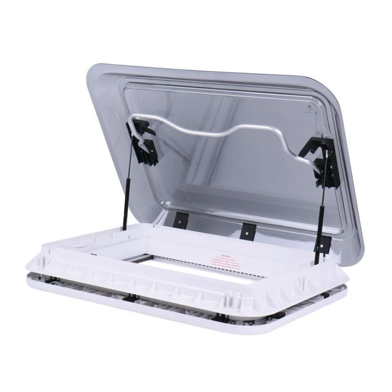Le Panorama 700 x 500 de CARBEST est un grand lanterneau de toit avec ouverture par barre de levage et vérin gaz, avec contre-cadre à éclairage LED 12 V pour camping-car, fourgon aménagé et caravane.
