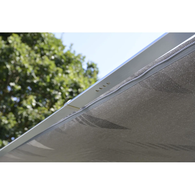 Pour finaliser votre Ă©quipement outdoor, il sera Ă©galement possible d’y ajouter un auvent complet dessous pour fermer complètement votre store banne.