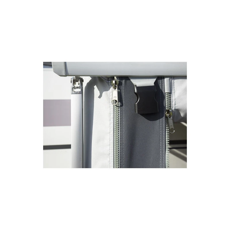Equipé de série de mousse et de barre pression, l’étanchéité sera parfaite contre votre véhicule. Pour une finition optimale et obtenir un auvent entièrement clos, nous vous conseillons de combiner le côté à la façade It’s Holiday de DWT, elle pourra rejoindre le côté grâce à ses fermetures éclairs. Le côté peut être installé à gauche comme à droite.