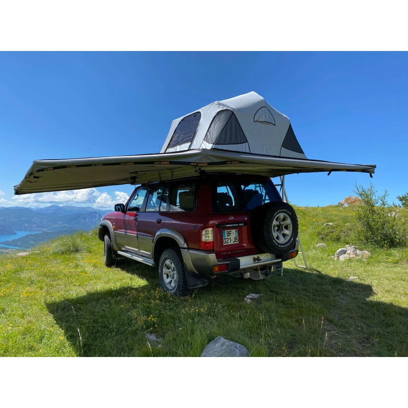 Le store Falcon de chez JAMES BAROUD est un accessoire associé à votre tente de toit. Cet abri de raid vous permettra d’optimiser votre espace de campement en étant abrité du soleil ou de la pluie. Avec une toile XXL, il est nettement supérieur aux stores bannes grâce notamment à une tenue au vent exceptionnelle.