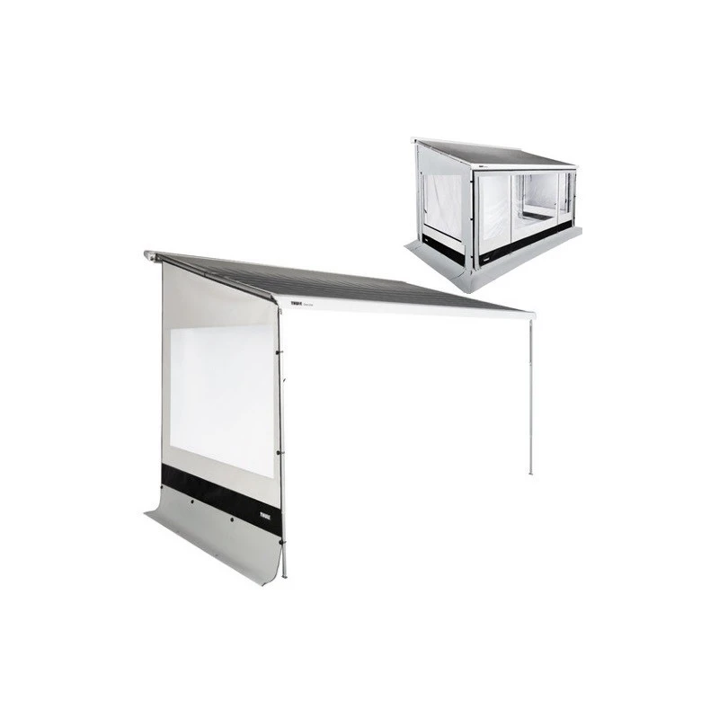 La paroi latérale de store THULE Rain Blocker G2 est une paroi réversible pouvant se monter sur le côté gauche ou droite. Elle permet de créer une barrière efficace contre le vent et la pluie.